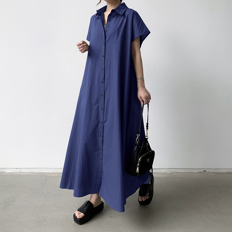 Mejora tu guardarropa con este llamativo vestido largo, diseñado para impresionar con su corte holgado, su cuello con cuello, su acabado liso y su tejido ligero con dobladillo hasta el suelo. Es tu prenda imprescindible para brillar en cualquier ocasión.