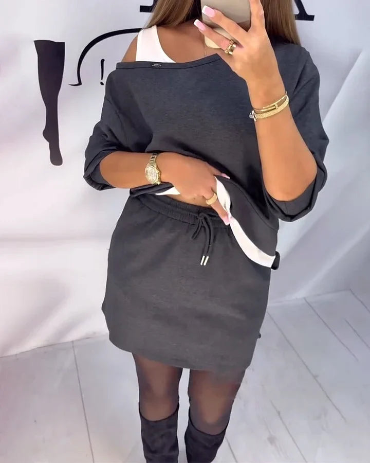 Este conjunto de dos piezas está diseñado para una sofisticación sencilla con una silueta relajada que favorece sin esfuerzo. Con una blusa versátil y falda a juego, es perfecto para los días en los que quieres lucir arreglada sin perder comodidad.