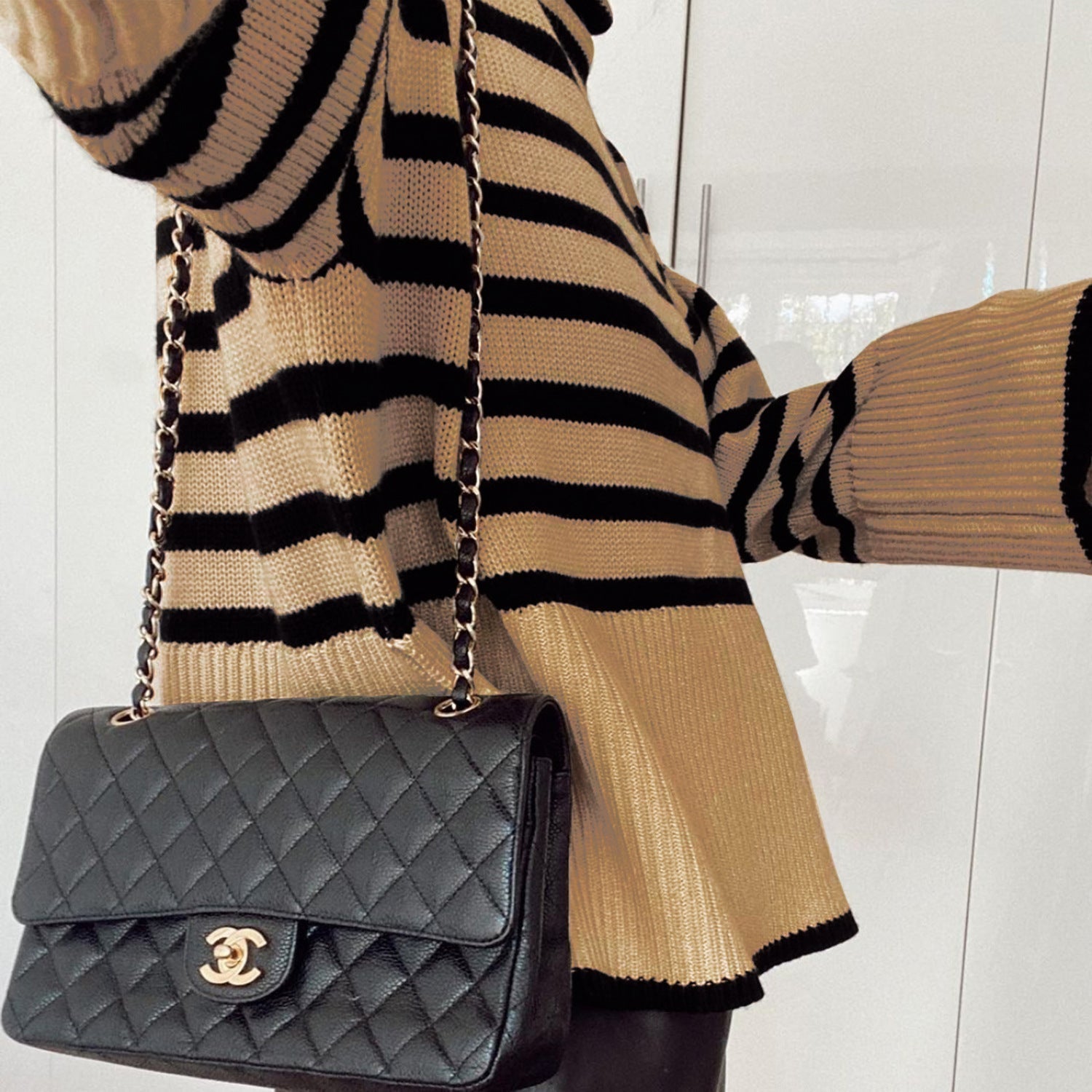 Este suéter casual combina rayas clásicas con un ajuste relajado, ofreciendo un look fácil pero elegante para cualquier ocasión. El cuello alto y las mangas amplias crean una silueta moderna que pasa sin esfuerzo del trabajo al fin de semana.